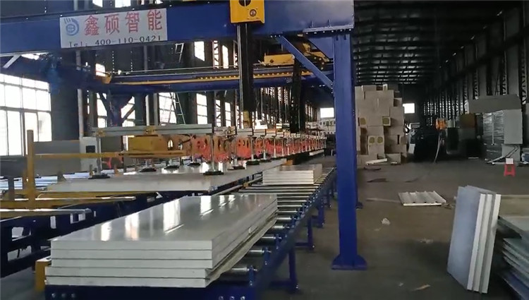正式亮相!全新一代聚氨酯復(fù)合板生產(chǎn)線(xiàn)自動(dòng)碼垛機(jī)投入使用